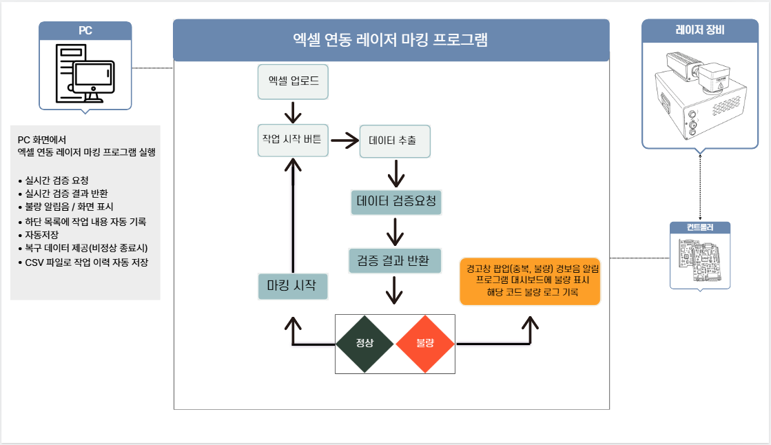 막스레이저는 엑셀 데이터를 직접 연동하여 작업을 자동화하는 레이저 마킹 프로그램을 제공합니다.