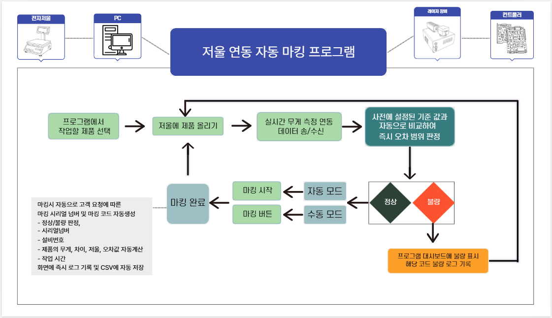 • 수동 모드 제공 : 필요 시 작업자가 직접 마킹 실행 가능