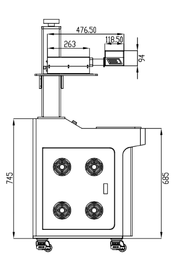 레이저 헤드에 레일을 달아 앞뒤로 슬라이딩 합니다. 이 옵션은 제품이 크거나 무거울 때 작업판 위에서 작업 할 수 없으므로, 헤드를 앞으로 밀어 장비 밖에서 작업 할 수 있습니다.